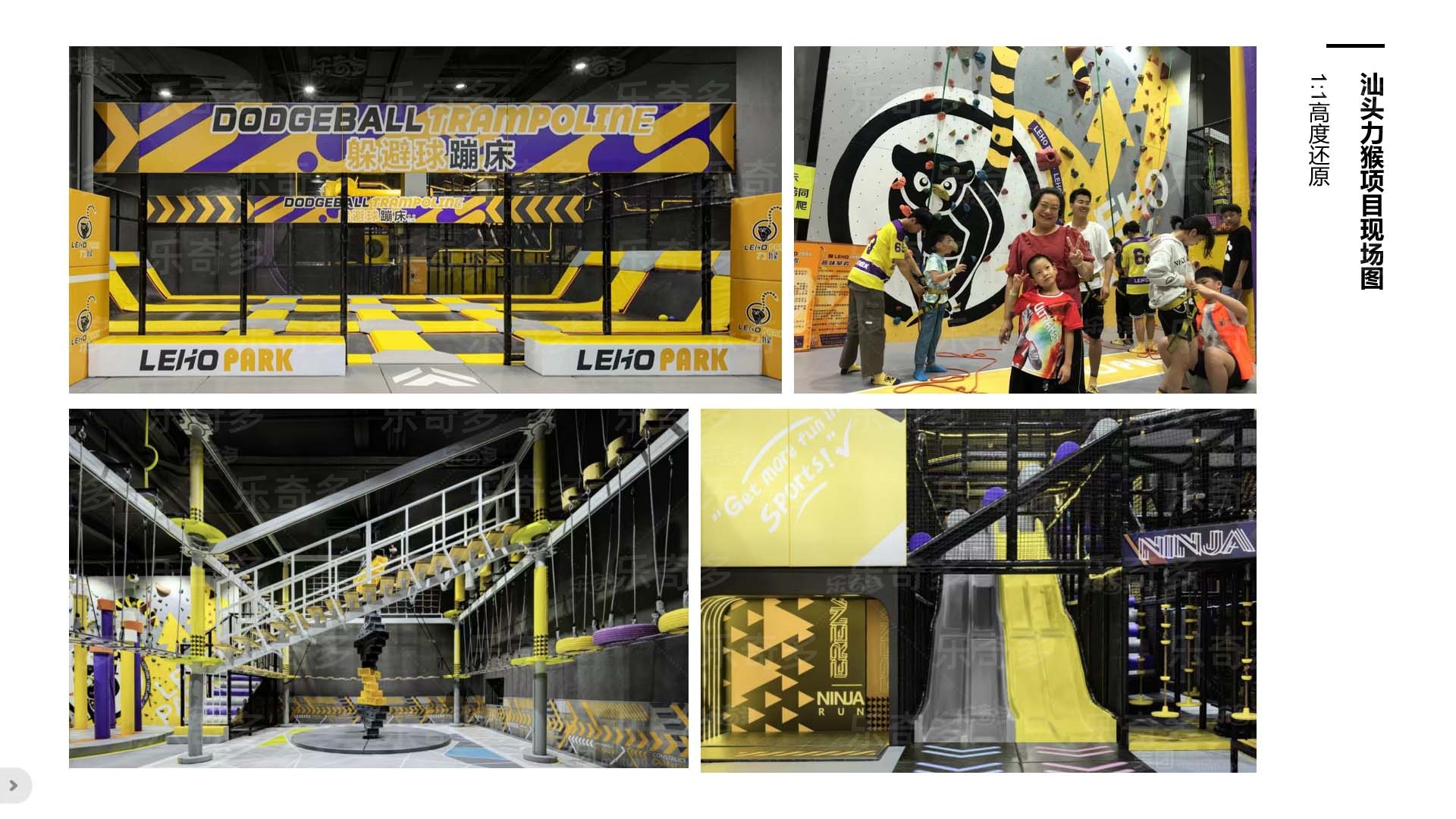 項(xiàng)目玩法:專業(yè)蹦床、自由蹦床、走避墻、螺旋滑梯,波浪滑梯,互動(dòng)投影,忍者拓展,創(chuàng)意攀巖,抱石攀巖,信仰之躍,梅花樁,高空拓展等。